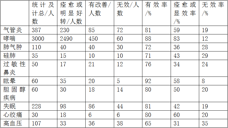 這里有一份空氣負離子在臨床應用中的統計報告圖: