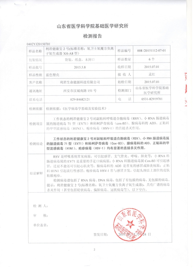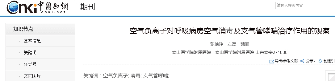 大量科學研究證明,存在于自然界空氣中的負氧離子既可以進行空間殺菌消毒,同時又是一種對人體有益的自然因子。這也是迄今為止科技界發現的最安全的殺菌消毒方式。負離子殺滅病毒的作用早已被醫學界所公認,相關的臨床報告也是不勝枚舉。大家可以在知網上查到很多的相關資料。