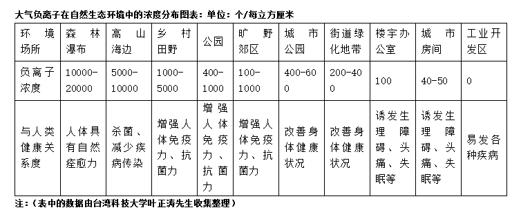 負(fù)離子(負(fù)氧離子)濃度與健康的關(guān)系