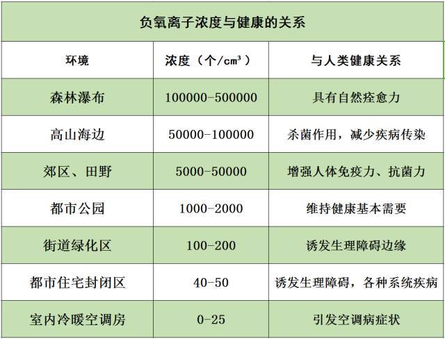科學(xué)解讀:負(fù)氧離子含量與健康的關(guān)系 |